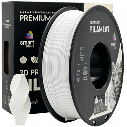 Smart Print PLA Mat Bela je visokokakovosten filament z nizkim sijajem, zasnovan za prikrivanje sloj..